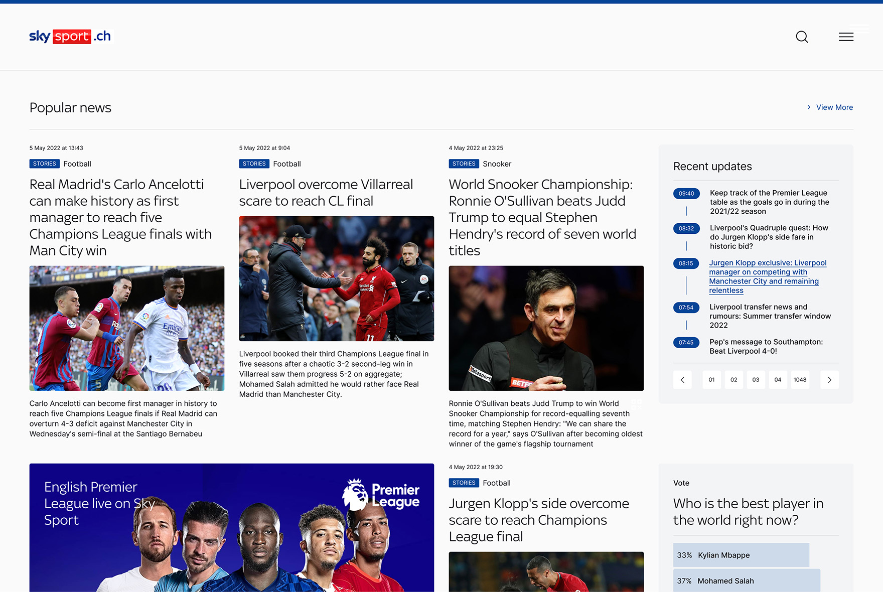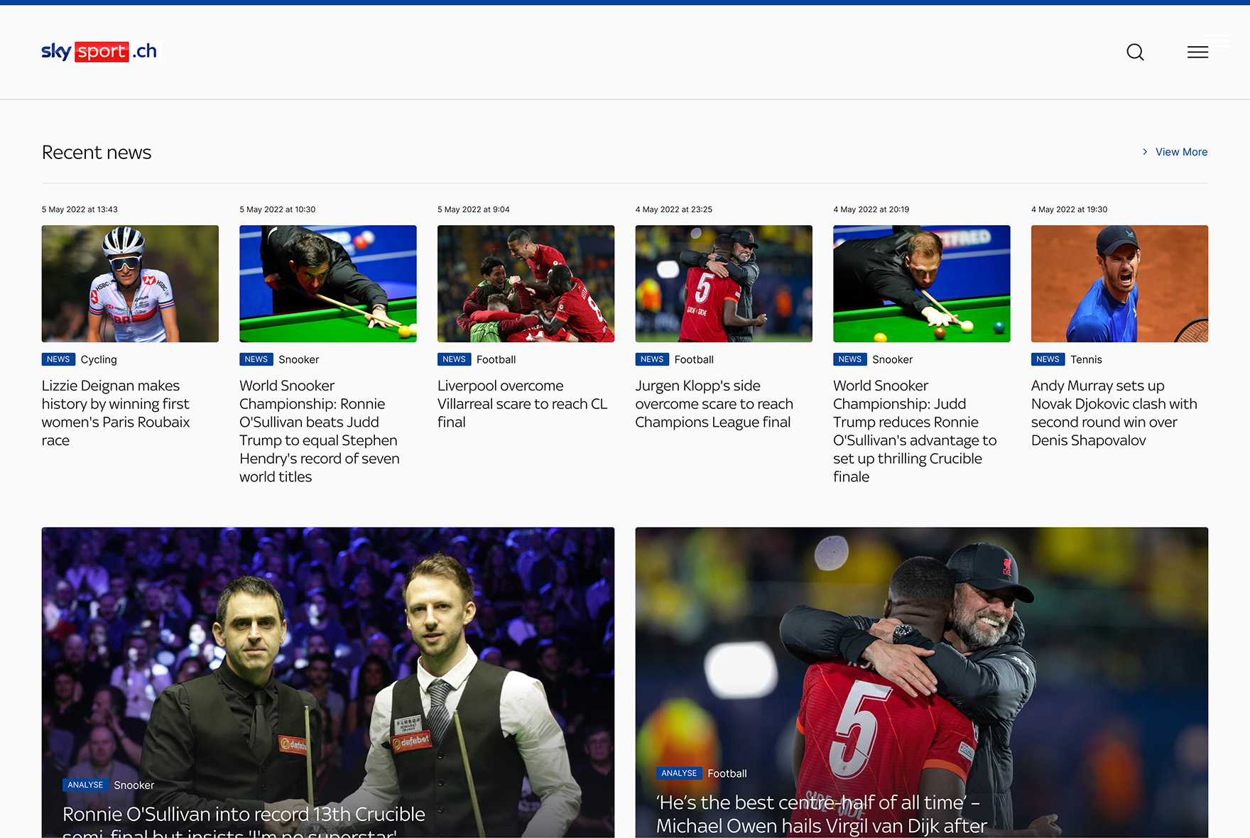 The new Sky Sport CH website has been designed to be as fast and easy to use as possible. Read and watch the sports news that matter to you in a few clicks, and don't miss a thing.